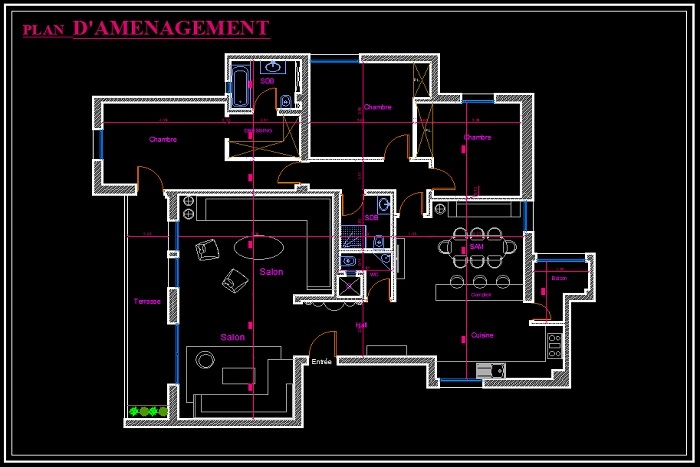 Plans d'amenagement 2D, Facades, Vue de faces ...